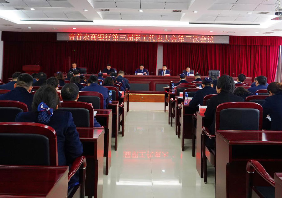4月9日下午,吉首农商银行第三届职工代表大会第三次会议暨工会第一届会员代表大会第二次会议(以下简称“双代会”)在总行14楼会议室召开,该行党委副书记、行长邱明,纪委书记、监事长傅贤良,党委委员、副行长谷燕兵、吴承志,48名“双代会”代表出席会议。工会主席谷燕兵主持会议并讲话,作《凝心聚力 务实笃行 努力团结全体职工推进吉首农商银行高质量发展》的报告;工会经费审查委员会主任吕亮作工会经费审查工作报告;会议审议关于吉首农商银行2021年度工资分配办法的议案;党委副书记、行长邱明做总结讲话。