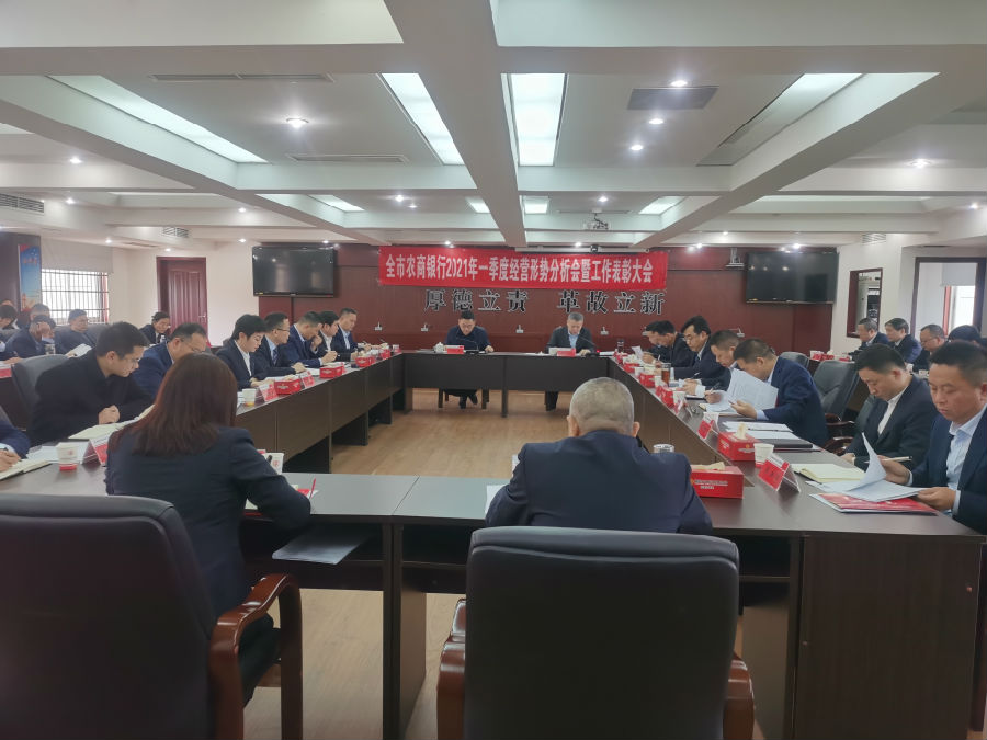 4月13日上午,常德办事处在六楼会议室组织召开全市农商银行2021年一季度经营形势分析会暨工作表彰大会。办事处机关全体员工,各农商银行班子成员、办公室主任参加会议。