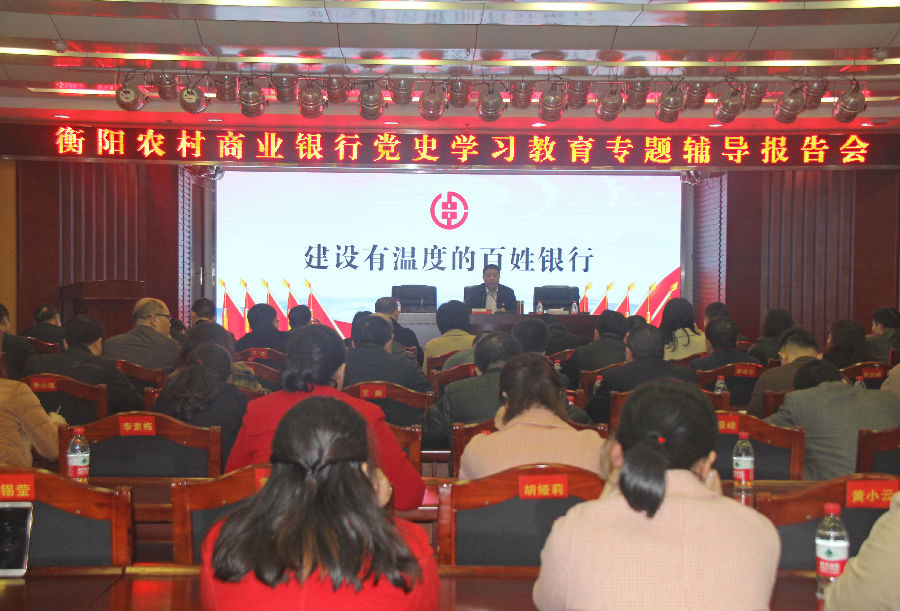 4月15日晚,衡阳农商银行组织召开党史学习教育专题报告会,党委书记、董事长邓来发以“学史明理,开创新局”为题,为各支部书记、机关全体党员作专题辅导。