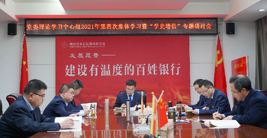 为深入贯彻落实省农信联社关于党史学习教育的安排部署,扎实推进党史学习教育,4月15日上午,吉首农商银行党委理论学习中心组织开展2021年第四次集体学习暨党委“学史增信”专题研讨会。党委书记、董事长郑崇武主持会议,党委班子成员、党委办及党群工作部负责人参加学习。