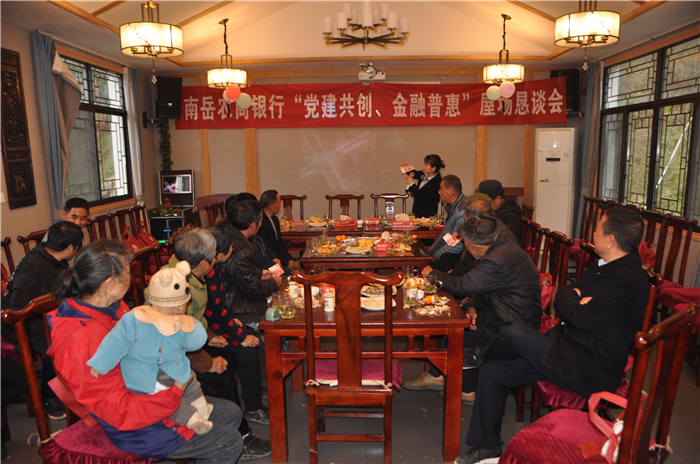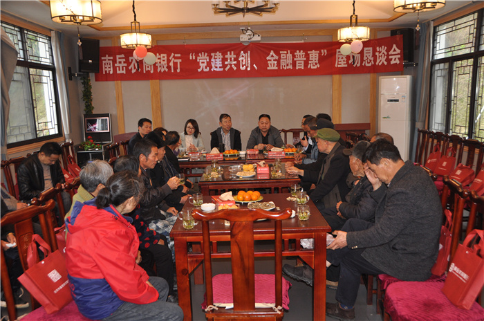 为响应衡阳市市委、市政府在全市全面推广“屋场恳谈会”模式的号召,进一步发挥屋场恳谈会在建强基层党组织、推进“党建共创、金融普惠”行动,助力乡村振兴等方面的积极促进作用,4月19日,省农信联社衡阳办事处党组成员、副主任吕宏忠一行深入南岳农商银行调研,我行组织新村村委、村民代表30余人召开了“党建共创、金融普惠”屋场恳谈会。