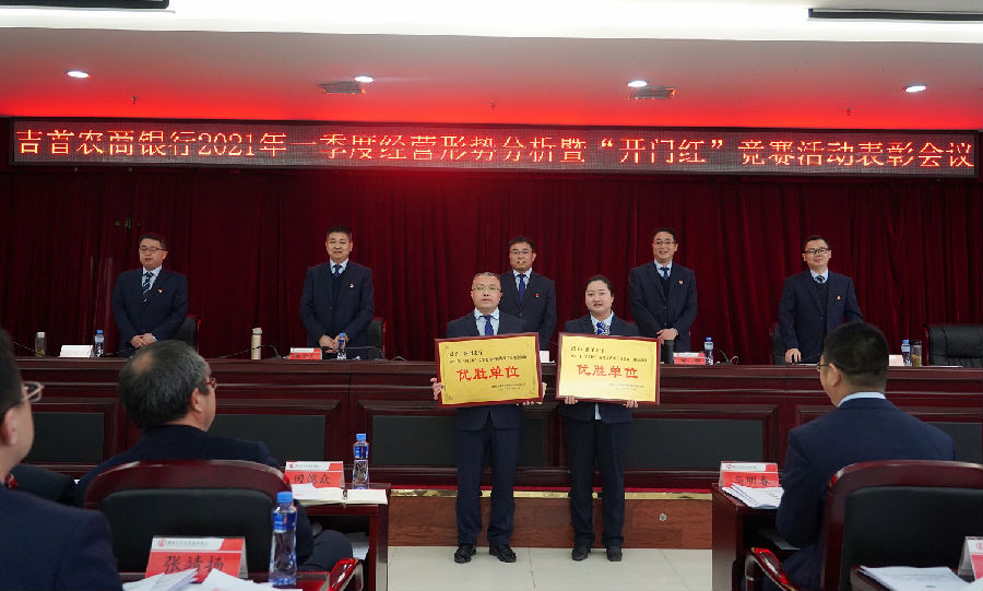 4月19日上午,吉首农商银行召开2021年一季度经营形势分析暨“开门红”竞赛活动表彰会议,总结分析一季度经营形势和“开门红”竞赛活动,表彰优胜单位和先进个人,明确下阶段重点工作任务。党委班子成员、机关部门经理、各支行正副行长、分理处主任、委派会计及先进代表共计81人参加会议。