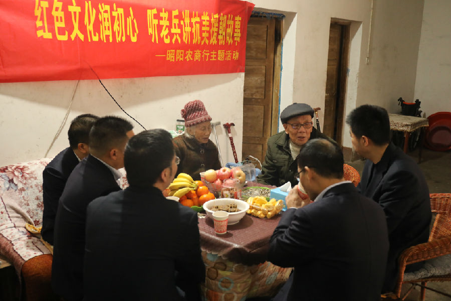 4月21日,昭阳农商银行党委书记、董事长海峻,纪委书记、监事长刘中秋等一行人走访慰问参加抗美援朝退休员工王利堂。为弘扬革命精神,使党史学习教育学习入脑入心,海峻同志邀请他为前来探望的党员干部们讲抗美援朝革命故事。