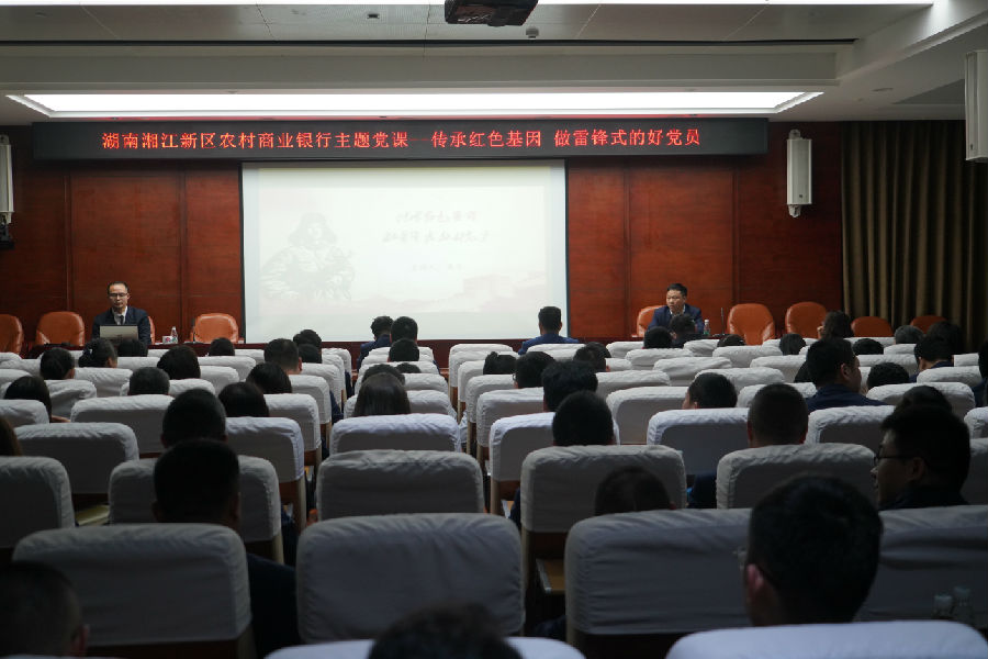 为进一步坚定红色信念,发扬红色传统,传承红色基因,4月22日,湘江新区农商银行特邀中共湖南省委党校党建教研部教授为全体员工讲授《传承红色基因 做雷锋式的好党员》专题党课。