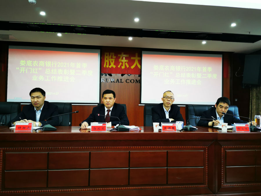 4月27日上午,娄底农商银行召开了2021年首季“开门红”总结表彰暨二季度工作推进会议。领导班子、部室经理,支行正副行长和委派会计共88人参加了会议。会议由纪委书记张祺鸷主持。