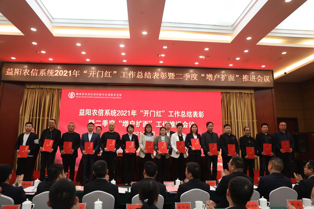 会议还通报了通报益阳农信系统2021年一季度主要经营指标情况、“开门红”工作情况以及“增户扩面”工作推进情况,对一季度“开门红”竞赛活动先进单位及个人进行了表彰,五名先进代表作典型发言。