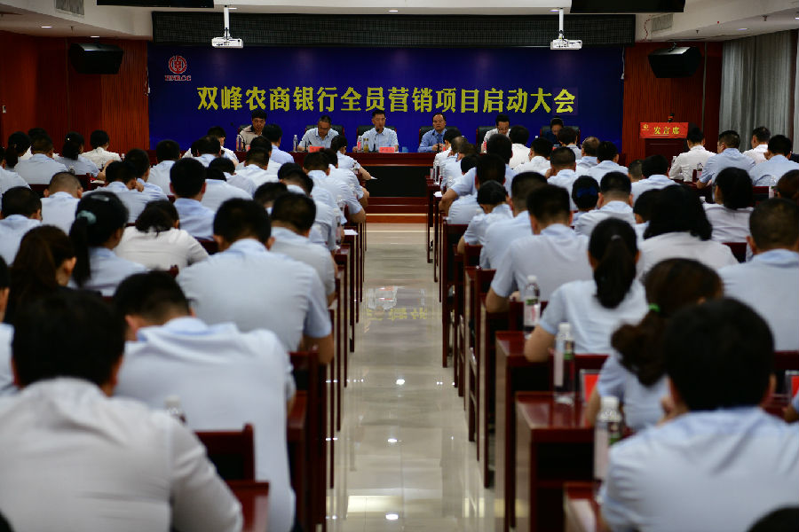 会上,张勇峰传达了5月10日全省农信系统第二届改革与发展大会会议精神并就全员营销项目作动员讲话。他指出:开展全员营销活动,有助于树立“加快发展”的理念,有助于端正谋事创业的态度,有助于提升履职能力。他强调:全员营销项目是推动全行下沉重心、转变工作作风的务实举措,更是推动全行业务结构转型、厚植发展根基的战略举措。全体干部职工都要练好“学、思、践、悟、写”五项基本功,即“学”要有宽度、“思”要有深度、“践”要有力度、“悟”要有高度、“写”要有厚度。就开展全员营销活动,他要求做到四个“强化”:强化心态调整,强化责任传导,强化氛围营造,强化督促检查。