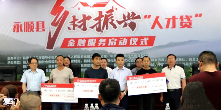 启动仪式上,我行作为乡村振兴“人才贷”及相关金融服务的主要承办银行,向乡村振兴人才代表永顺县云上坡山泉水厂现场发放贷款300万元。乡村振兴“人才贷”是县委人才办、县政府金融办、县人行联合推出,服务“三农”、支持乡村振兴发展的新产品,是人才与金融创新结合的一次有益实践。我行当前推出与之配套的专属信贷产品,以农村地区农户、专业大户、致富带头人及乡贤、农民合作社负责人等涉农经济主体为对象发放,为乡村振兴人才支撑注入金融新动能。永顺农商银并将以这次启动仪式为契机,创新服务,改进工作,紧紧围绕国家乡村振兴战略和县委“5573”发展思路,切实做实、管好、用活乡村振兴“人才贷”,加大对乡村人才的金融支持力度,发挥金融源头活水作用,有效解决乡村人才融资痛点,为全县农村经济发展作出新的更大的贡献!