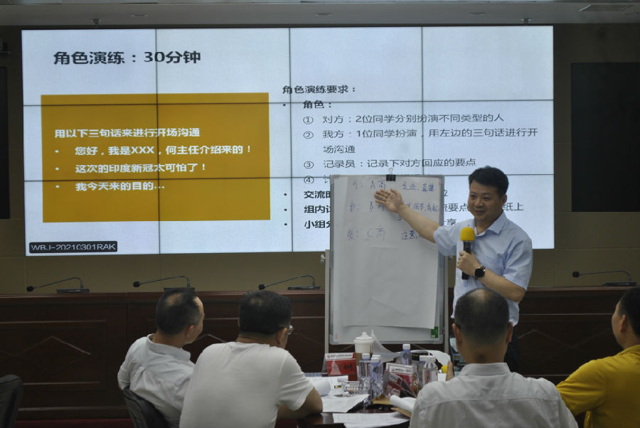此次培训特邀中国管理科学学会人力资源管理专业委员会数字化管理技术研究中心主任、TAS/TMS数字化产品发明者宋兆虹授课。培训中,宋兆虹对TAS测评技术和5个专业维度数码的含义进行了简要介绍。解读了参训人员的测评情况,并引导参训学员自我纠偏、调整思维。参训学员围绕“如何充分利用人力资源”进行了探讨交流,并模拟了在真实工作场景中,如何通过充分发挥个人优势,达到人均效能倍增、组织效能提升的目标。