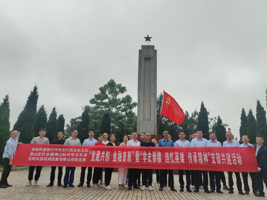 为弘扬爱国主义精神,深入开展党史学习教育,5月27日,许市支行联合党支部联合许市镇横山岭村党总支部、岳阳天添药用胶囊有限公司党支部顺利开展了“党建共创、金融普惠”暨“学史崇德、追忆英雄、传承精神”支部共建活动,三家支部共计20余名党员、入党积极分子踊跃参与。