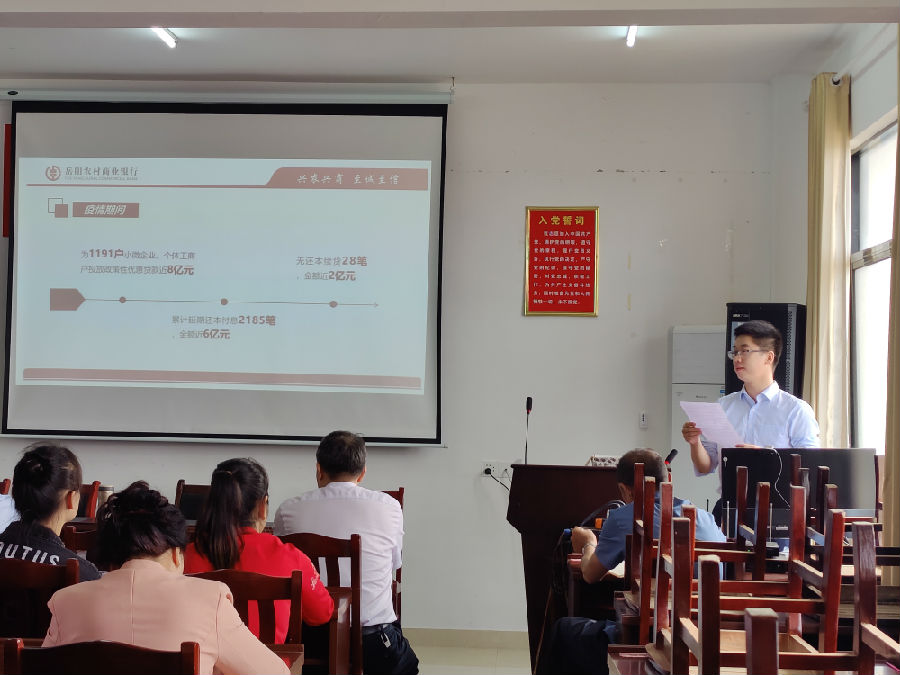 座谈会上,三家党支部还分别交流了党史学习教育经验,岳阳农商银行解说员结合PPT介绍了该行特色金融服务及相关业务产品。