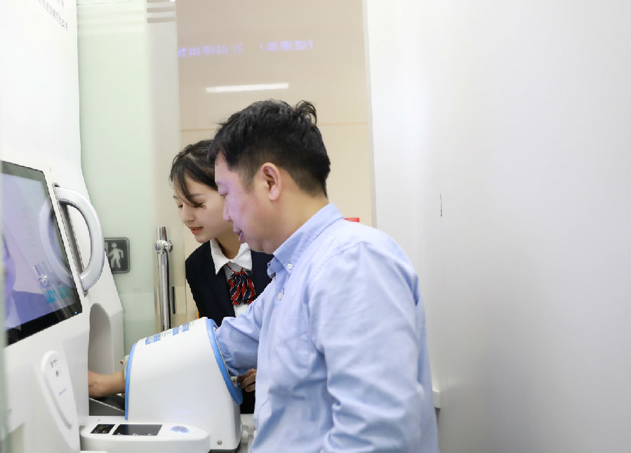 万金文一行首先来到我行创建的全省农信系统第一家社区银行——东沩社区银行综合体。对我行主动拓宽服务渠道,完善服务功能,积极探索转型发展新模式给予充分肯定。“在办什么业务呀,为什么选择宁乡农商银行,不到其他银行呀。”万金文与前来办业务的刘大哥亲切交谈并详细询问客户对我行服务评价。