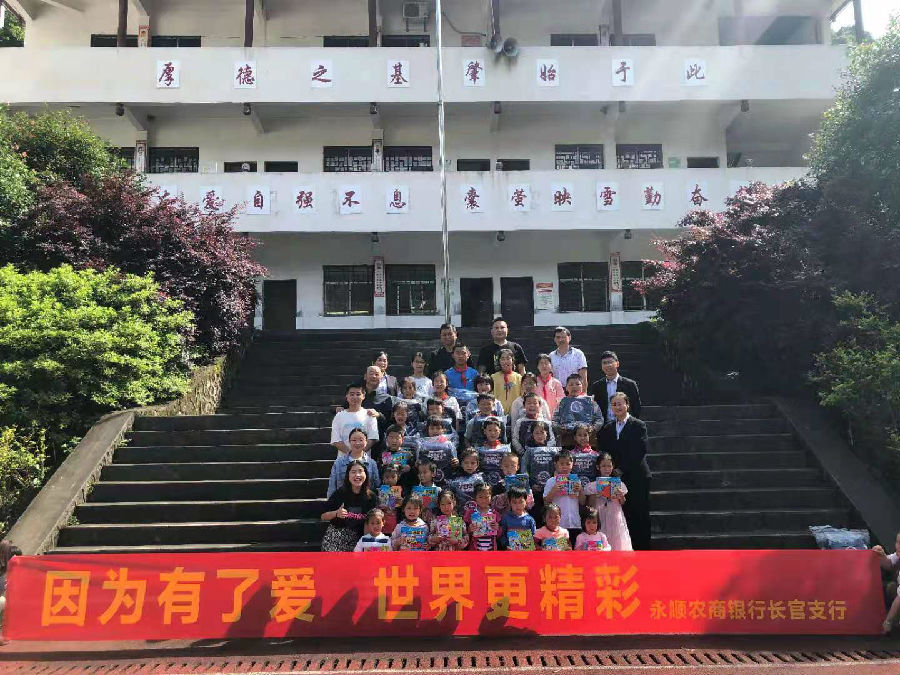 6月1日,永顺农商银行长官支行在永顺县小溪镇小溪完小开展“因为有了爱 世界更精彩”庆“六一”主题活动,为全体师生送去了节日的问候。