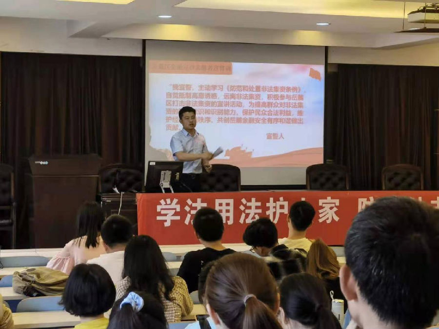 5月28日下午,观沙岭街道石岭塘社区、桔子洲街道八字墙社区、后湖新村、湖南师范大学数学与统计学院以及雨敞坪镇机关同时开讲“一堂金融课”。宣讲员张苹在观沙岭街道石岭塘社区,从非法集资的定义、非法集资的防范措施、非法集资的处置措施三个方面展开宣讲,她结合近年来社会上发生的一些非法集资典型案例,向广大群众展示了非法集资对人民群众财产和国家金融安全的严重危害性;宣讲员杨超在师大数计院与学生频频互动,他将非法集资的定义、防范措施与处置措施一一告知;宣讲员柳慧莹在雨敞坪镇机关会议室,结合近期非法集资典型案例深入剖析,用幽默风趣、通俗易懂语言揭示了识别和打击非法集资的有效方法,向广大群众展示了非法集资对人民群众财产和国家金融安全的严重危害性。近期,金融宣讲员们将以“学法用法护小家,防非处非靠大家”为主题,以“同讲一堂金融课”的形式,深入其他社区和高校宣讲《防范和处置非法集资条例》,向群众宣传防非处非知识,真正做到防非处非工作在基层畅通到最后“一公里”,唱响岳麓打非工作的最美“和谐音”。