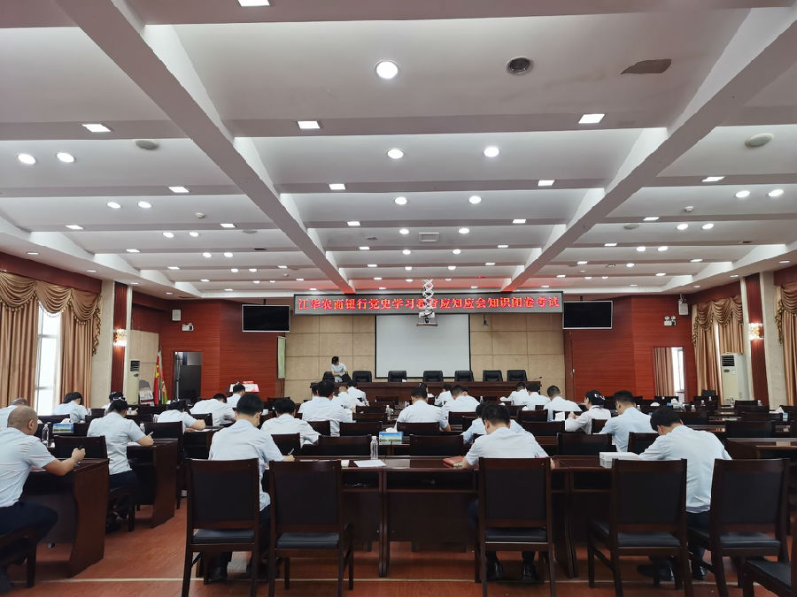 为激发干部职工党史学习教育的热情,检测近期党史学习教育成果,6月4日下午,江华农商银行组织三十余名青年党员在总行六楼会议室举行党史学习教育知识测试。