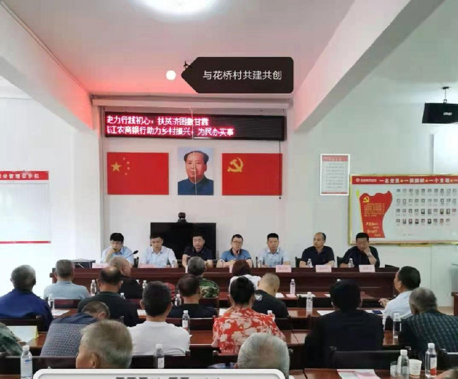 会上,在听取花桥村的乡村振兴驻村情况介绍后,黎书记表示桃江农商银行作为农村金融主力军、乡村振兴排头兵和花桥村的乡村振兴后盾单位,将义不容辞担负起“支农支小”的历史使命,为花桥村建设美丽乡村、同志们干事创业提供最坚强的金融后盾。并指出下一步我行将在花桥村开展阳光信用村建设、打造福祥E站、持续开展送金融服务下乡等活动,以此来助力花桥村乡村振兴,帮助村民们过上美好生活。
