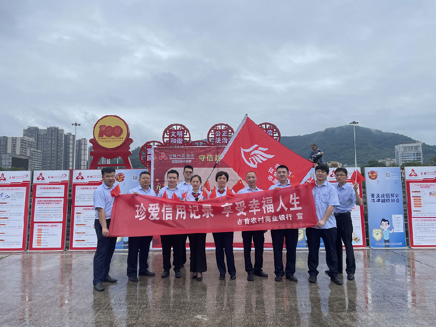 为做好本次活动,人民银行湘西州中心支行组织辖内工行、农行、中行、建行、邮储银行、农村商业银行等11家金融机构围绕“守信践承诺永远跟党走”主题,开展“红色信用三湘行”“征信知识进社区 百姓身边话诚信”等专题征信宣传志愿服务活动。吉首农商银行以“我为群众办实事”为落脚点,派出一支由10名征信宣传志愿者组成的“信之风”征信宣传小分队全程参与。在世纪广场设立宣传展台,摆放展板,小分队工作人员全方位、多角度开展征信知识宣传,向过往群众提供征信咨询和解读个人信用报告。为进一步增强社会公众对征信的认知度,小分队工作人员在世纪广场开展“红为本色 信为初心”的红歌快闪活动,和群众一起唱响《歌唱祖国》,引导群众在“守信践承诺 永远跟党走”万人签名墙签名和合影。本次活动现场共发放各类宣传折页和宣传单1000余份,参与活动和咨询达500余人次,征信宣传教育活动取得了预期成效。