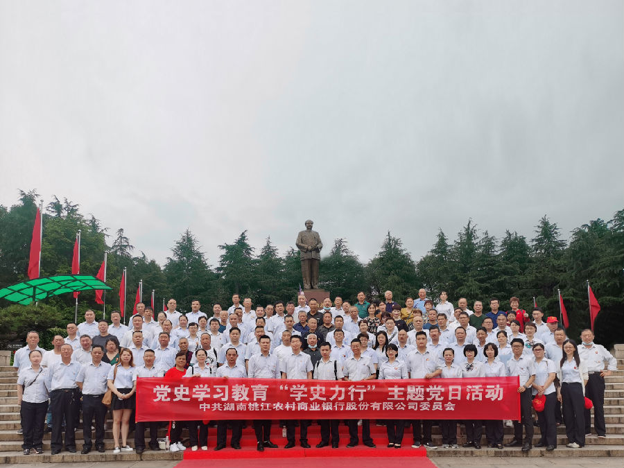 为迎接中国共产党建党100周年,6月20日,桃江农商银行组织全体新进党员、机关党员、退休党员,和部分基层在职党员,共计122人,来到韶山、花明楼开展“学史力行”主题党日活动。