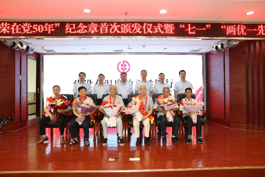 为庆祝建党100周年,让老党员深切感受以习近平总书记为核心的党中央的关怀和温暖,同时为了更好地总结经验、树立典型、激励先进,6月22日上午,衡阳农商银行举办“光荣在党50年”纪念章首次颁发仪式暨“两优一先”表彰活动。行领导、“光荣在党50周年”老党员及家属代表、各支部书记、各支行部室负责人、“两优一先”表彰对象、预备党员、党务部门党员等共计110余人参加活动,衡阳农商银行党委副书记、行长罗利豪主持活动。