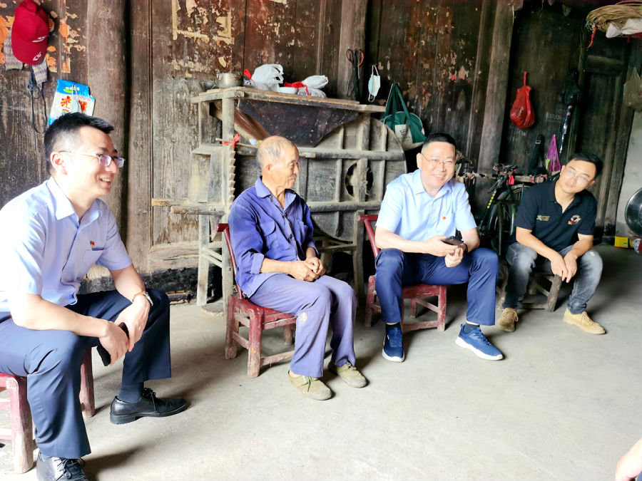 (五)共创共建强治理,普惠金融有作为。“这是你们直播带货的地方吗?”“现在网上销售的情况如何?”“对农商银行福祥e站建设有什么意见建议?”在丰瑞乐家庭农场产品展示厅,刘汉军一行与农场负责人和工作人员边说边看,详细了解产品销售和电商平台发展情况,并就石门农商银行福祥e站建设进行专题调研,刘汉军指出,要依托商户特点和区域特色,将福祥e站打造成特色化、便民化的村级综合金融服务点,同时要创新工作思路,把移动银行和福祥e站建设结合起来,客户通过福祥e站进行业务预约办理,支行通过“金融背夹”上门办理业务。在黄旗峪村、礼阳山村,办事处党组班子成员分别与蒙泉镇领导、村组干部和石门农商银行干部员工座谈,听取“金融村官”“金融三员”工作情况汇报,询问了对农商银行工作的意见建议,并就如何服务乡村振兴、服务地方产业发展、服务百姓生产生活,农商银行深入融入基层治理,整村授信“线上化”工作开展进行深入交流。