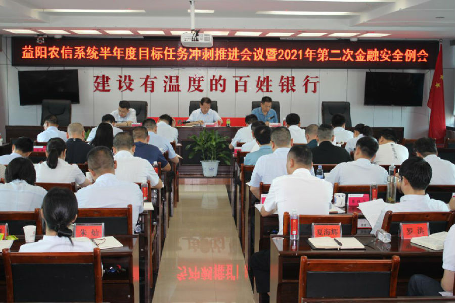 为全面冲刺半年度目标任务,确保进位争先,确保金融安全,向建党百周年献礼,6月23日,办事处组织召开益阳农信系统半年度目标任务冲刺推进暨2021年第二次金融安全例会,办事处领导、各科负责人,各农商银行班子成员、办公室主任参加会议。