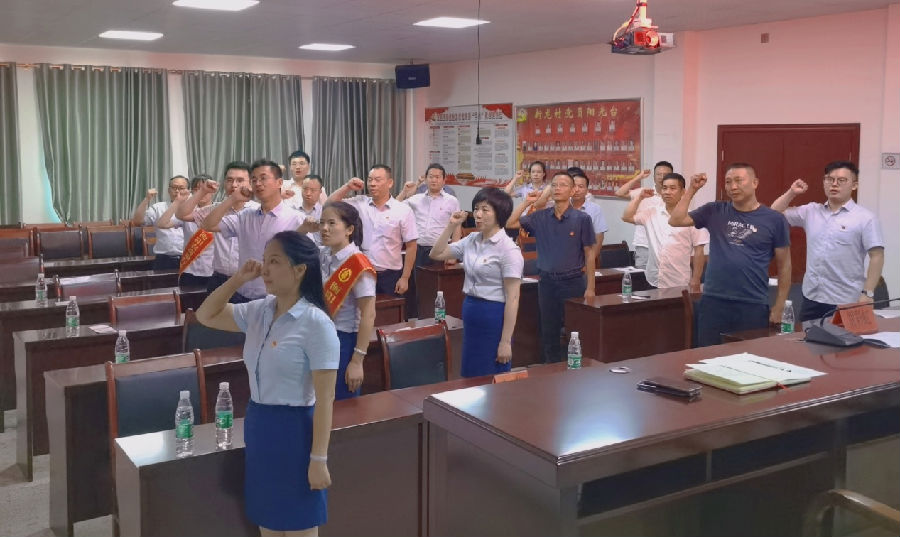 全体党员来到东阳渡街道新龙村党员活动室,党支部书记贺彩虹带领全体党员重温入党誓词,誓词字字铿锵有力,句句掷地有声,表达了衡阳农商银行人“不忘初心、牢记使命”的坚定决心。