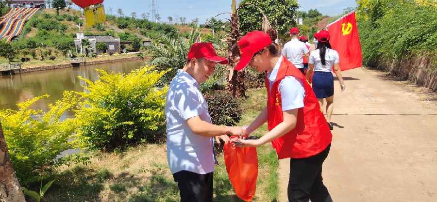 会后,东阳联合党支部与东阳渡街道新龙村总支委会联合举办了“党旗高高飘扬 我为群众办实事 ”——新龙村辖区垃圾清理活动。通过垃圾清理活动,进一步促使全体党员牢固树立“绿水青山就是金山银山”的理念,共同建设美好家园,共同维护良好形象,争做环境整治的“领跑者”,用实际行动为群众做表率,用实际行动为党旗增辉。