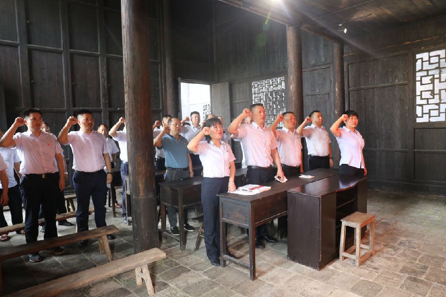 当日上午8点,该党支部全体党员在总行集中观看了中国共产党成立100周年庆祝大会,认真听取了习近平总书记在庆祝中国共产党成立一百周年大会上的讲话。会后,该党支部组织全体党员赴爱国主义教育基地塘田战时讲学院参观学习。在基地内参观学习时,在该行党委委员、副行长胡巧云带领下,在鲜红的党旗下,全体党员佩戴党徽,举起右手、握紧拳头,庄严宣誓。通过组织党员重温入党誓词,再一次体会到了作为共产党员的神圣感、自豪感与使命感,尤其是作为农商银行的共产党员,要铭记党的奋斗历史,追寻革命先辈的光辉足迹,坚定理想信念矢志不渝永远奋斗。