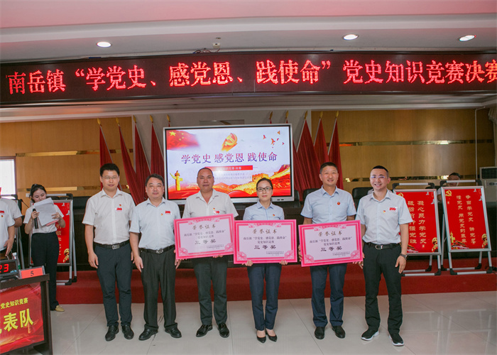 为进一步促进党员“学党史知识,悟党史精神”,将党史知识刻印在心、落实于行,7月8日上午,南岳农商银行联合南岳区南岳镇人民政府举办“学党史、感党恩、践使命”党史知识竞赛,南岳镇镇政府机关、村(社区)及该行第一党支部、第二党支部共计十支代表队参加比赛。