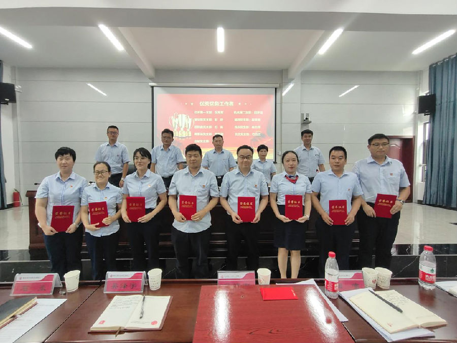 图为优秀党务工作者接受表彰