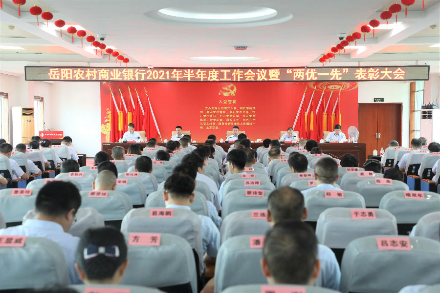 7月15日,岳阳农商银行召开2021年半年度工作会议暨“两优一先”表彰大会。会议全面总结了岳阳农商银行上半年各项工作,深入分析了经济金融形势,部署安排了下半年的中心工作和重点工作,隆重表彰了优秀共产党员、优秀党务工作者、先进基层党组织。总行党委班子成员,督导员,正副协理员,机关部门正副经理,支行正副行长、委派会计、客户经理及“两优一先”获奖人员参加会议,纪委书记、监事长杨立主持会议。