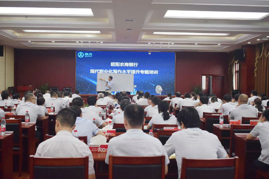 为进一步提高宣传成效,提升员工舆情处置能力、写作能力。7月19日至20日,昭阳农商银行办公室邀请到上海融兴培训机构,在11楼会议室举办写作水平提升专题培训,该行部门经理、网点负责人和会计主管、通讯员及45岁以下部分员工共计150余人参加此次培训。