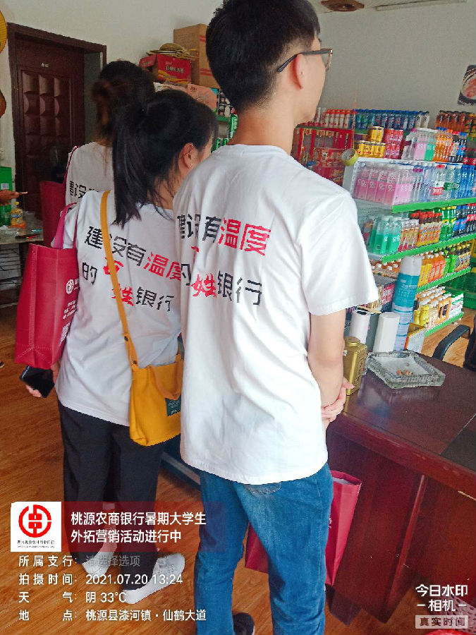 7月20日,烈日当头,桃源农商银行的暑期大学实习生们此时此刻正手拿宣传资料和精美小礼品开启扫地毯模式。他们身穿统一制服,不顾天气炎热,结伴行走在街道社区、大街小巷、田野乡村。衣衫被汗水打湿,头发被汗水浸润,就连手中的笔都因为汗水而滑脱,但汗水浇不灭他们挑战自我的信心,困难阻挡不了他们前进的脚步,他们朝气蓬勃如初升的太阳般在桃城乡间踏访,形成一道靓丽的风景线。