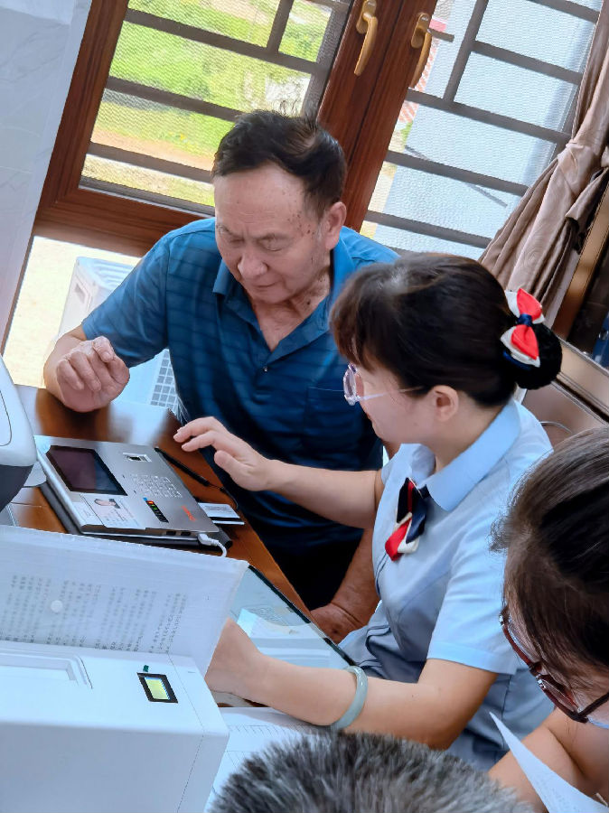 尽管夏日炎炎,房间闷热,但营业部为老人们送上了沁人心脾的服务,将快捷、方便、优质和智慧的金融移动服务终端带到百姓家中,让数据多跑路,让客户体验“一次也不要跑”就能办理业务的新感觉。