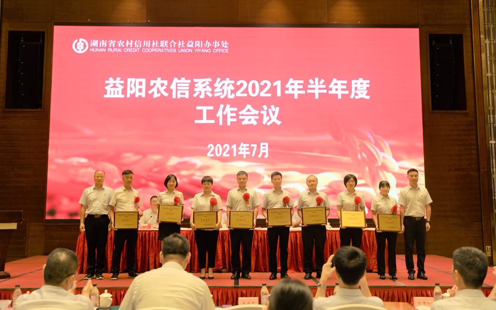 为认真贯彻落实全省农信系统2021年上半年经营形势分析暨客户拓展推进会议精神,总结益阳农信系统2021年上半年各项工作,安排和部署下半年各项工作,7月29日,办事处组织召开益阳农信系统2021年半年度工作会议,办事处领导、机关全体同志,各农商银行党委成员、机关部室负责人、各基层支行行长、“增户扩面”竞赛先进支行和个人,以及在上半年各项工作中表现突出的优秀代表参加会议。
