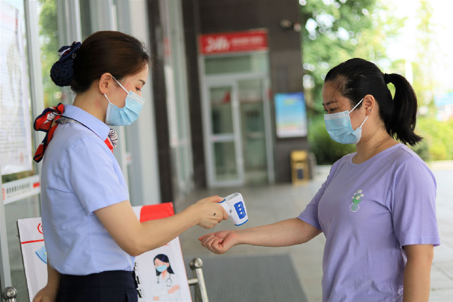 内外防疫有速度。对内严格落实防疫措施,要求各网点每日对营业大厅、自助设备、办公室进行日间消毒、晚间消毒,柜面人员佩戴口罩、手套上班,严格收支两条线,对收进发出的现金进行紫外线消毒,确保将病毒扼杀在摇篮里。对外严格落实预防措施,为没有佩戴口罩的客户免费派发口罩,对客户进行防疫测、查、登三部曲,即体温测量、查验两码并登记身份信息,为广大客户创造安全、放心的服务环境。