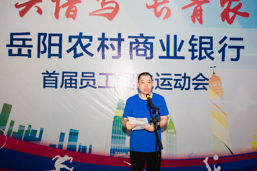 运动会现场,岳阳农商银行党委副书记何卫军致开幕词。他勉励全行干部职工,生活中,要培养健康的生活情趣,工作中,要加强团结协作,互动交流,“人人争当奋斗者,个个争做追梦人”。
