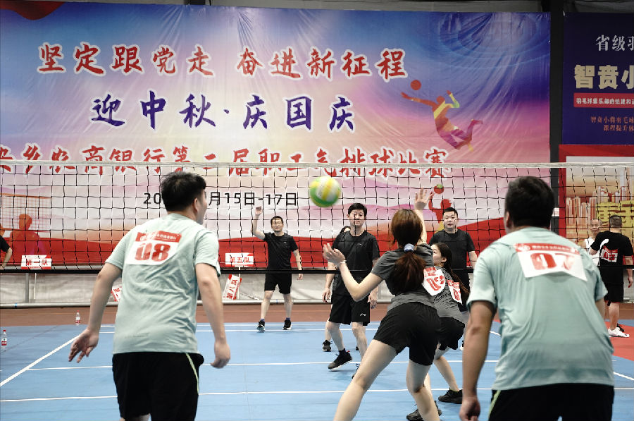 为庆祝中国共产党成立100周年,倡导“员工至尚”的服务理念,9月15日-17日,安乡农商银行2021年“迎中秋、庆国庆”暨第二届职工气排球比赛在安乡县北斗乒羽球馆举行。全行共8支职工代表队伍,近70余名运动员参加比赛。