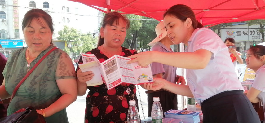 展台树立在车水马龙的闹市中,过路的行人纷纷好奇询问,尽管烈日炎炎,但大伙都热情满满,一一向咨询人员讲解相关金融知识。从最初的不好意思开口到侃侃而谈,从忐忑不安到应对自如,从站在展台内只知道递资料,到主动走出展台为客户详细解释,像是经历了一场洗礼,完成了一次蜕变。
