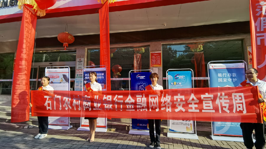 依托线下活动,提高宣传力度。石门农商行联合县人民银行及其他同业机构,组成联合宣传小分队,深入广场、社区、学校等地方开展网络安全知识宣传活动,现场为过往客户解疑答惑,耐心讲解目前电信诈骗及网络陷阱的各种手段及识别方法,增强了广大群众的网络安全意识。