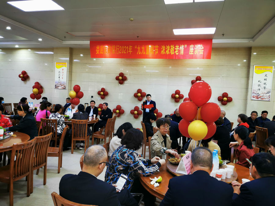 重阳节当日,娄底农商银行召开退休老干部、老员工重阳节座谈会,弘扬敬老爱老的传统美德。娄底农商银行党委书记李利民出席座谈会并讲话,其他党委班子成员均参加座谈,共计80人参加了座谈会。