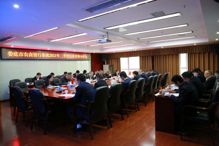 10月20日,娄底办事处组织召开全市农商银行系统三季度经营形势分析会,会议由办事处党组书记严桦主持,办事处领导、各科室负责人、各农商银行班子成员参加了会议。