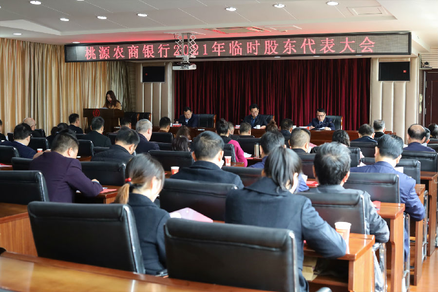 10月22日,桃源农商银行在总行六楼大会议室召开了2021年临时股东代表大会。公司全体董事、监事、部分股东代表近60人参加会议。桃源农商银行党委书记、董事长唐国主持会议。湖南凌风律师事务所律师见证会议全过程。