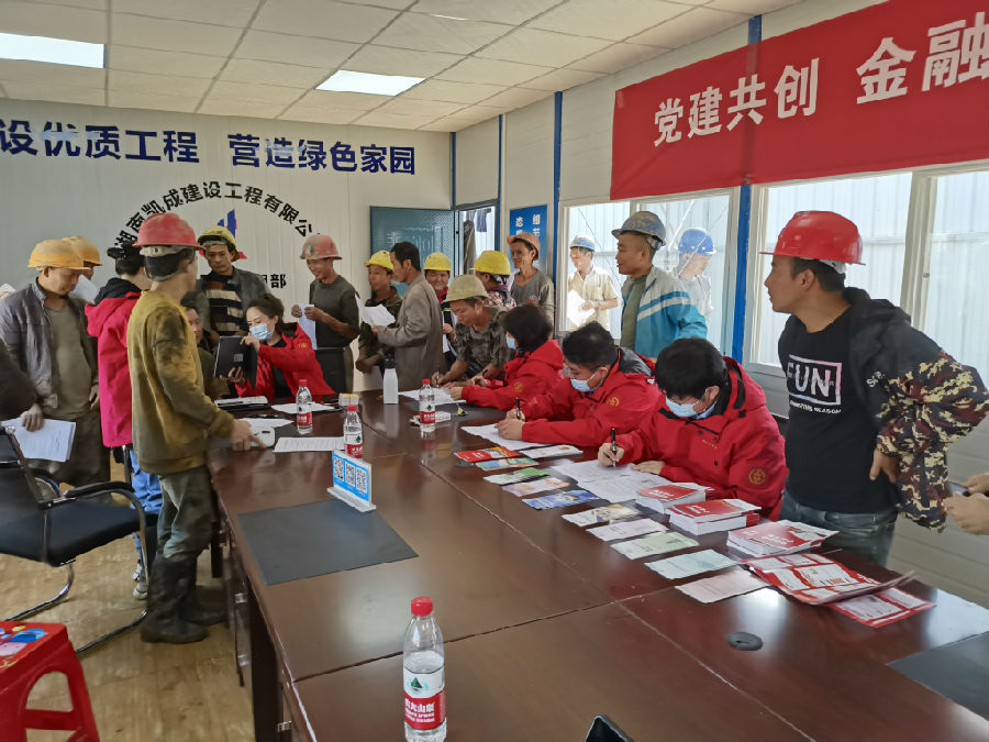 在现场,该行员工登录“福祥到家”业务系统,依次按步骤操作,几分钟内就成功为工友开出一张IC卡。接着又通过普惠金融栏目为工友们现场营销福祥e贷,向他们宣传足不出户就能办理贷款业务,得到了工友们的高度好评。此次上门服务共办理开卡业务43笔;客户信息完善业务60笔;预约办理其他业务29笔。在办完业务后,胡大哥激动地说“以前开卡要专门请假去银行排队办理,现在你们农商银行上门来工地给我们办卡,还不耽误我们干活的时间,这让我们做事的劲头更大了,吉首农商银行的服务真是既贴心又暖心啊!”