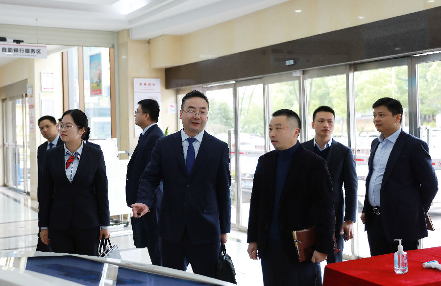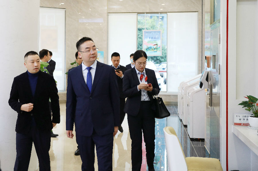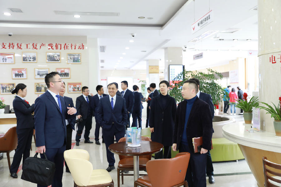 会后,刘鸿军陪同东安农商银行金伟一行参观了我行营业部,现场观摩了新康社区银行综合体十二大功能分区如何运转,并实地考察了夏铎铺兴旺村福祥e站。