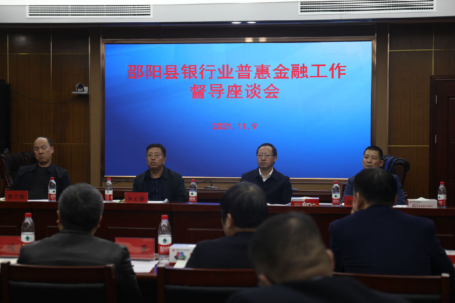 为进一步推动邵阳县银行业普惠金融高质量发展,确保全面完成全年普惠金融各项目标任务和县域存贷比提升计划,11月9日,邵阳银保监分局党委书记、局长李文静带领普惠科科长周宁辉、办公室主任赵悟春在昭阳农商银行召开邵阳县银行业普惠金融工作督导座谈会,邵阳县委常委、常务副县长文立斌,邵阳县金融服务中心主任陈学飞出席,5家市级分行主要负责人和县内10家银行机构负责人参加座谈。