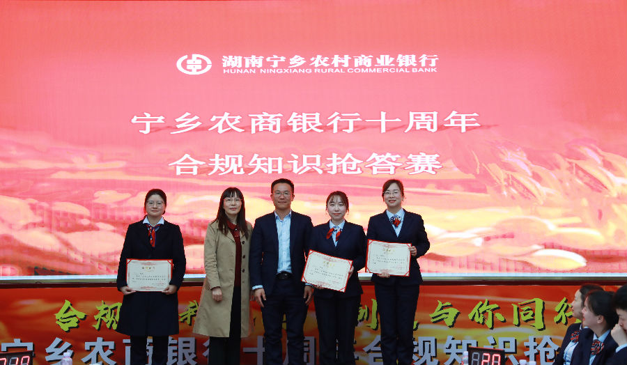 通过本次比赛,进一步营造了全员合规、全程合规、自觉合规的浓厚氛围,提升经营管理水平,增强全员的岗位合规意识,达到了以竞赛促学习、促规范、促提升的目的,以优异的合规成绩向庆祝宁乡农商银行成立10周年活动献礼,我们也坚信,宁乡农商银行的下一个十年将更加辉煌!
