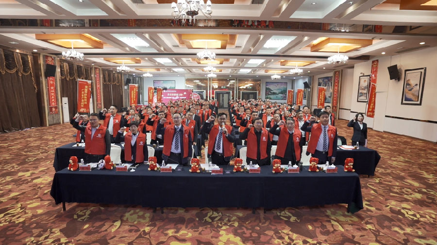 最后,在该行董事长的领誓下,全体与会人员手握右拳,集体起立宣誓,用坚定的信念和决心表示一定能夺取2021年“收官红”和2022年“开门红”。