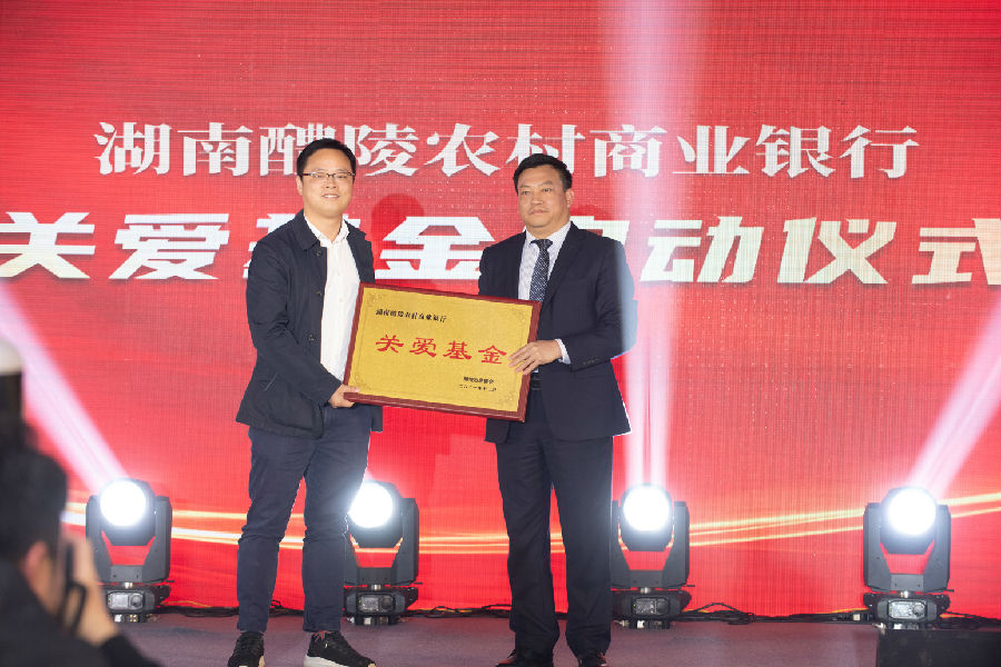 随后谢海龙代表醴陵农商银行现场向醴陵市慈善会捐赠关爱基金100万元,杨忠亮代表醴陵市人民政府授予醴陵农商银行“关爱基金”牌匾,感谢醴陵农商银行多年来在抗洪救灾、新冠肺炎疫情防控、助学助残、脱贫攻坚等慈善事业中的各项善举。