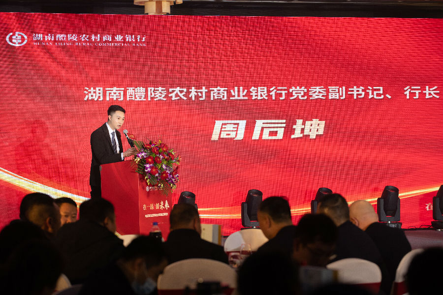 醴陵农商行党委副书记、行长周后坤向参会人员介绍了醴陵农商银行2022年跨年“开门红”系列活动与重要产品。